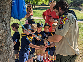 The Den is the small group within the Pack and is organized by grades K-5. Each Den meets monthly for the Scouts to tackle age specific activities known as Adventures.
